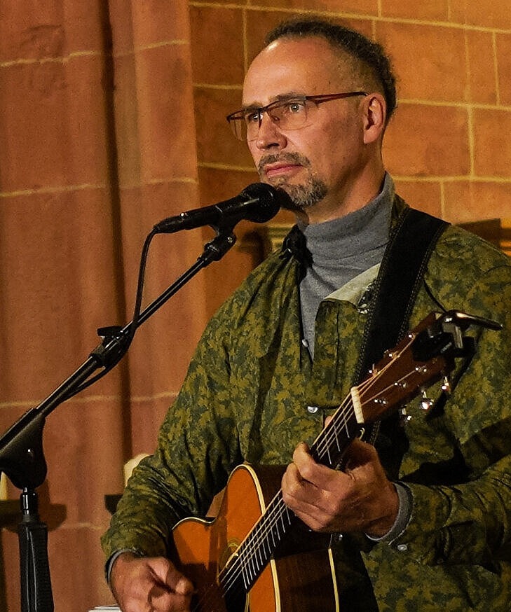 Eddi Hüneke spielte als Kostprobe seinen Song „Alles wird gut“, um die Gottesdienstbesucher*innen schonmal auf sein Konzert am selben Abend einzustimmen, das um 20 Uhr auch in der Schlosskirche folgte.